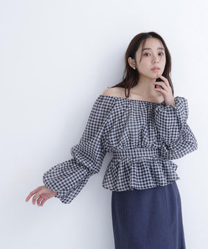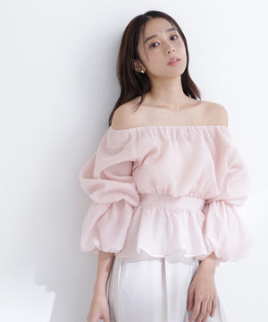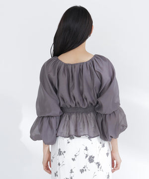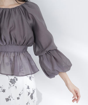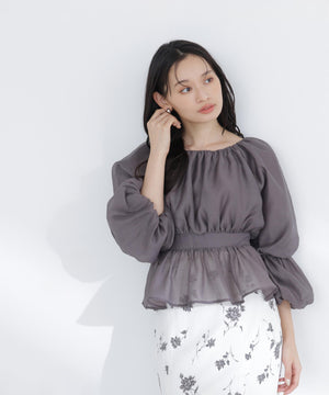 シアーギャザーペプラムブラウス