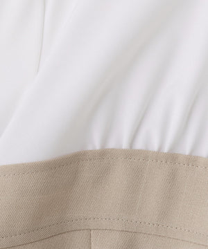 一枚でレイヤード風スタイルが完成するビスチェドッキングブラウス。きちんと感のあるブラウスにビスチェを重ねたようなデザインで、旬のスタイルが叶います。程よく構築的なシルエットがウエスト位置を高く見せ、スタイルアップ効果も期待。同素材のパンツとのセットアップで、より洗礼された印象のスタイリングが楽しめます。