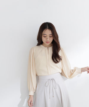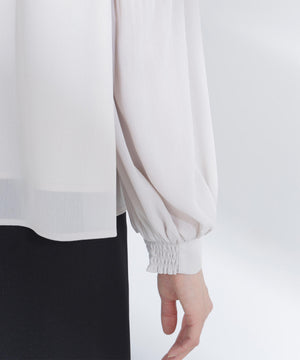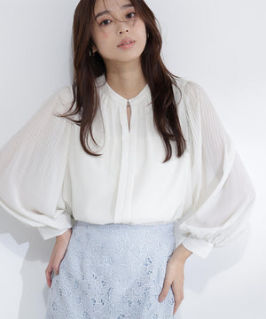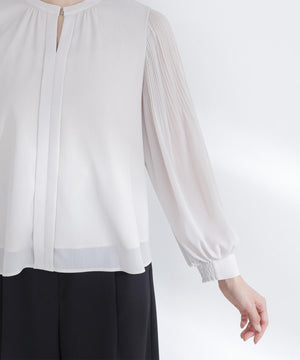 軽く柔らかい風合いの楊柳素材を使用。袖にはクリスタルプリーツ加工を施しています。