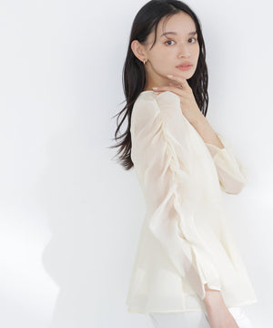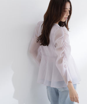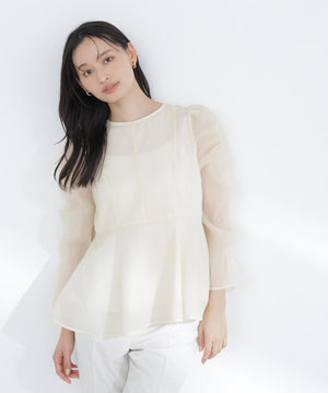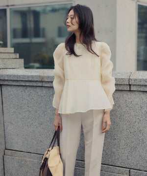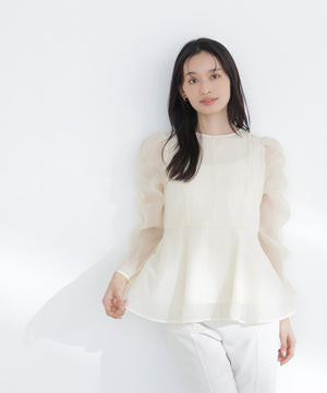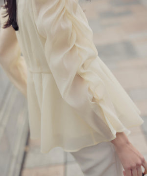 【一部店舗・mix.tokyo 限定カラー:ペールイエロー】シアーペプラムブラウス