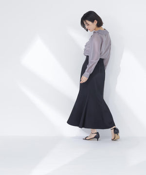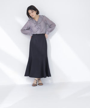 フロントのラッフルフリルがポイントの華やかなブラウス。袖山と袖口にギャザーをあしらった女性らしいスリーブデザインです。スカートでもパンツでも合わせやすく、コーディネートの幅が広がります。