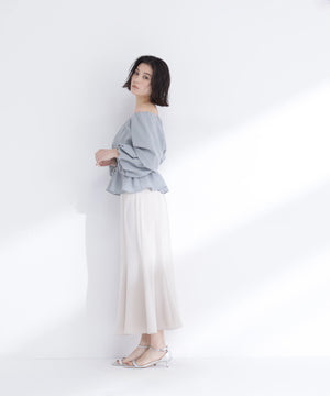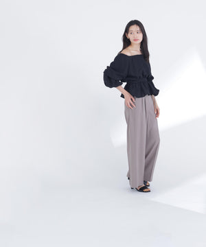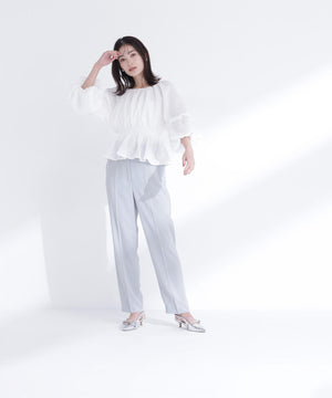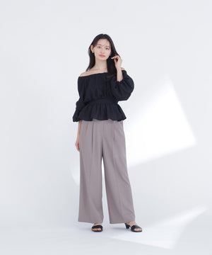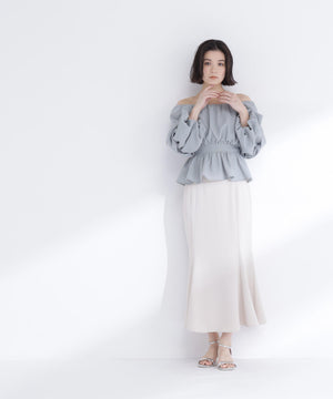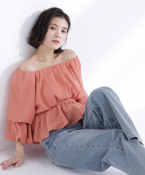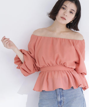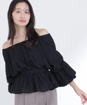 メッシュ素材で仕立てた軽やかなペプラムブラウス。オフショルダーとしても着用できるので、着こなしの幅が広がります。後ろウエストはゴム仕様で、程よいフィット感を実現。シルエットにメリハリが生まれ、スタイルアップ効果も期待できます。