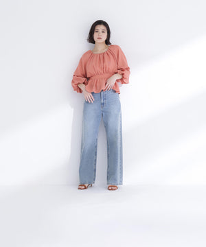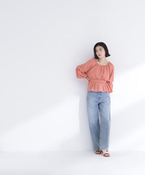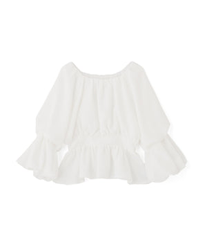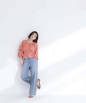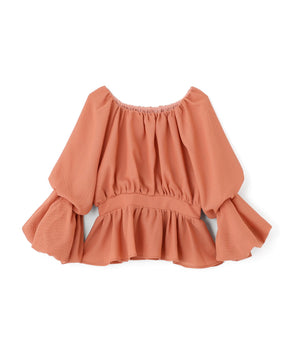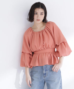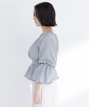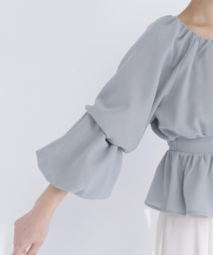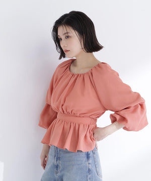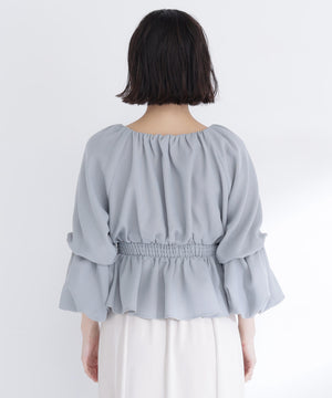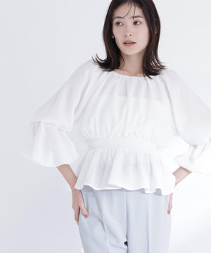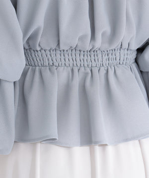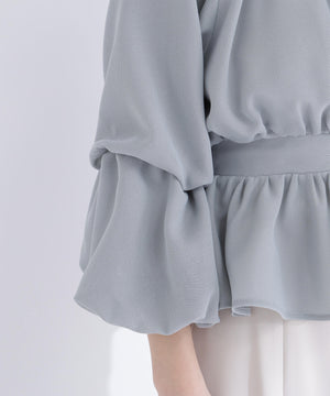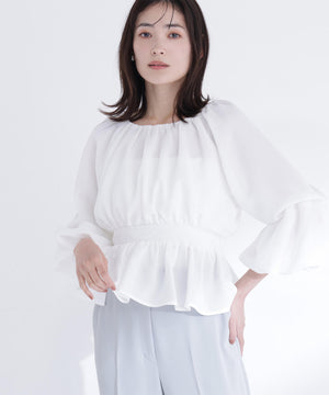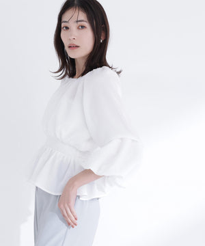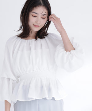 メッシュギャザーペプラムブラウス