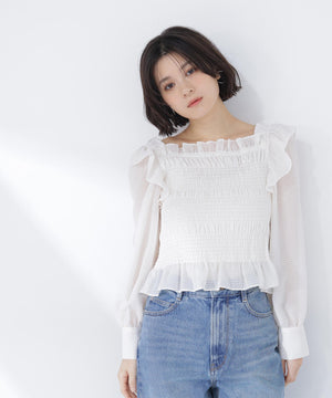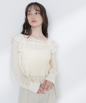 【一部店舗・mix.tokyo 限定カラー:イエロー】シアーチェックシャーリングブラウス