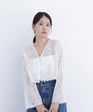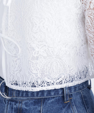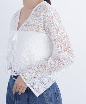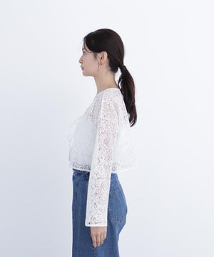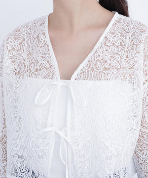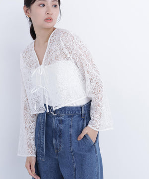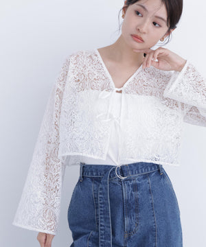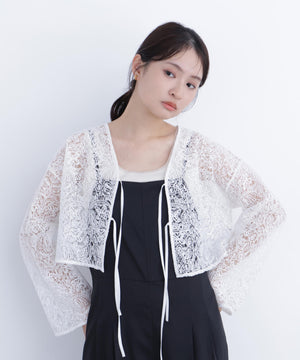 春らしい軽やかさを纏えるレース羽織ブラウス。ニットやカットソーに重ねるだけで、旬のレイヤードスタイルが完成します。軽やかな着心地なので、春のお出かけやデイリーコーデにぴったり。ショート丈でスタイルアップを期待できます。フロントリボンを結ぶデザインが、程よい抜け感とカジュアルな印象を叶えてくれます。