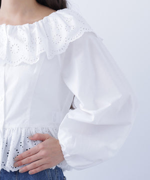 エンブロイダリーフリルブラウス