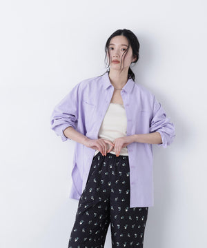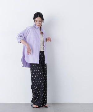 胸元のさり気ない刺しゅうがポイントのオーバーサイズシャツ。羽織りにも使えるサイズ感なのでロングシーズン活躍します。製品洗いで程よいカジュアル感をプラスし、春らしいカラーもポイントです。刺しゅうロゴはスペイン語で「暖かい」という意味が込められています。