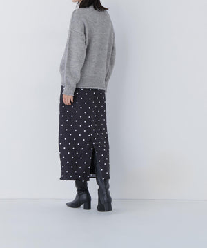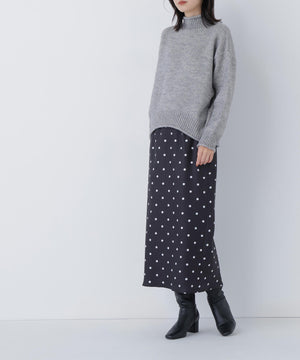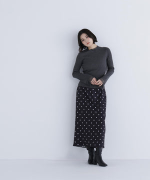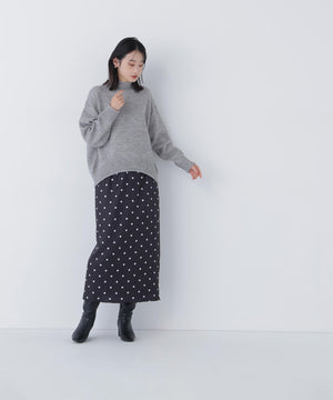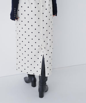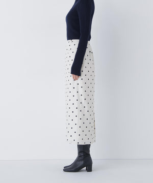 はくだけでトレンド感を演出してくれるポルカドット柄のタイトスカート。スマートなタイトラインが、大人の女性らしさと遊び心のあるスタイリングを楽しめます。すっきりとしたウエストで華奢なシルエットに見せてくれます。ケーブルニットやバイカラーカーディガンを合わせたり、足元はロングブーツもおすすめです。
