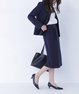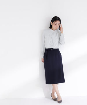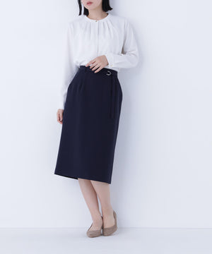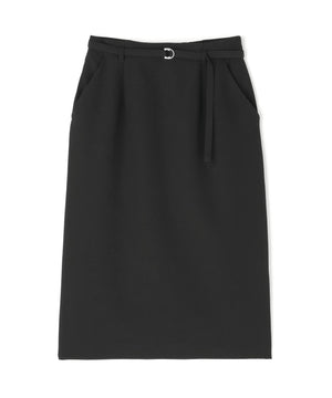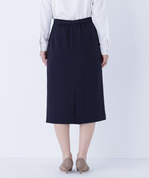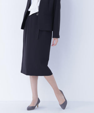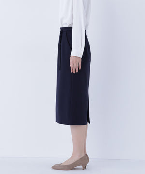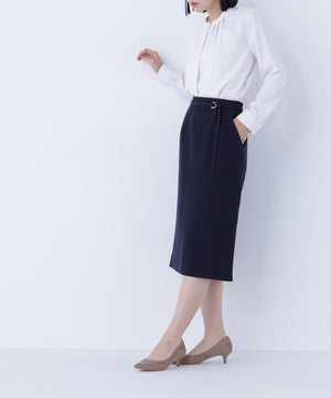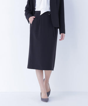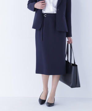 ハイウエストデザインでスタイルアップを叶えるタイトスカート。同素材のDカン付きベルトがアクセントとなり、ウエストラインをすっきり見せてくれます。後ろウエストはゴム仕様で、フィット感がありながらも快適なはき心地です。同シリーズのジャケットとのスーツスタイルもおすすめです。