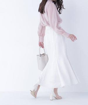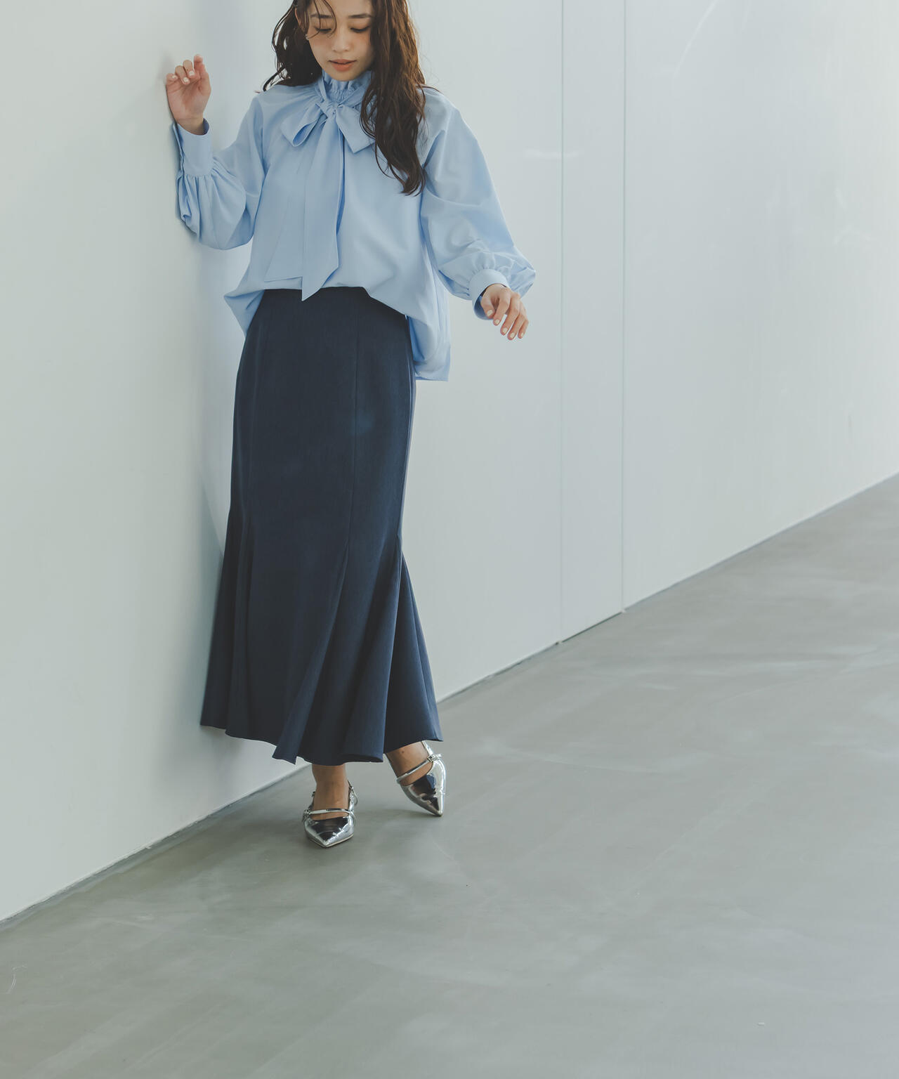 裾にマチを入れて裾幅を出したマーメイドシルエットがキレイなスカート。ハイウエストと縦に切り替えを入れたマーメイドシルエットで、スタイルアップを叶えてくれます。後ろウエストはゴム仕様でストレスフリーなはき心地。ジャケットやジレと合わせてもバランスよく決まります。無地の黒とオフホワイトとデニムライクなシャンブレーネイビーの3色展開です。