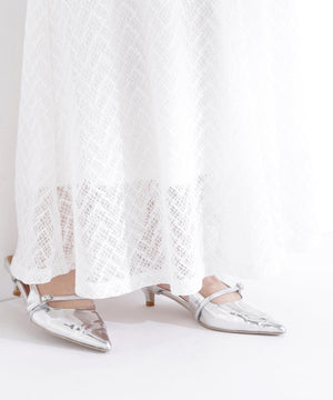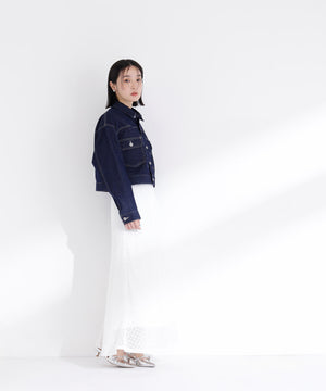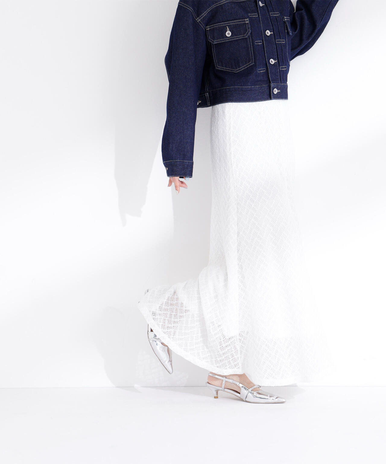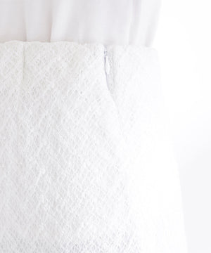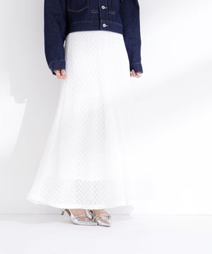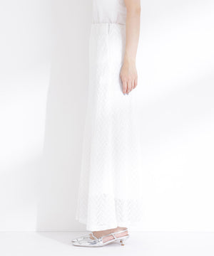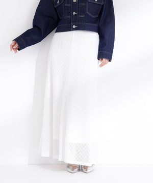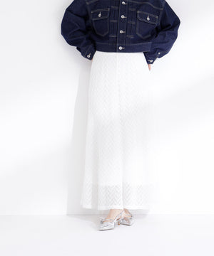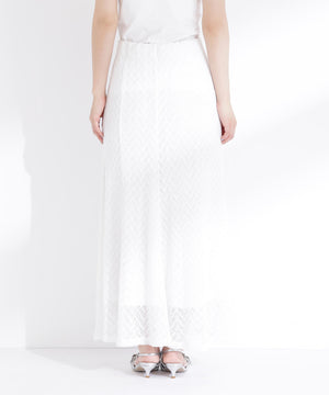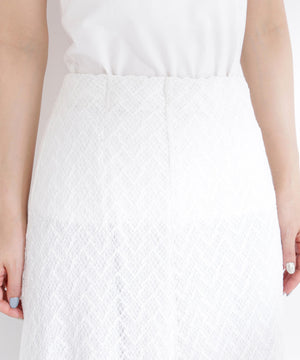 伸縮性のあるレース素材を使用した、着回ししやすいナロースカート。カジュアルにもフェミニンにも着こなせるナローシルエットです。裏地つきなので透けにくい仕様。ファスナー開きですっきりと着ていただけます。