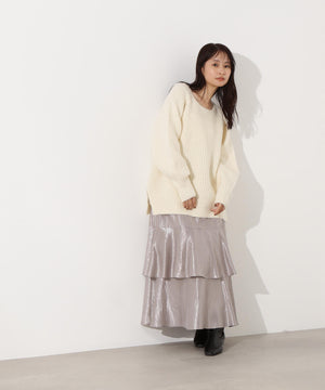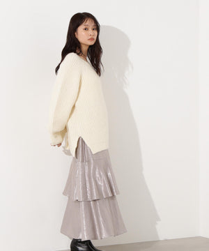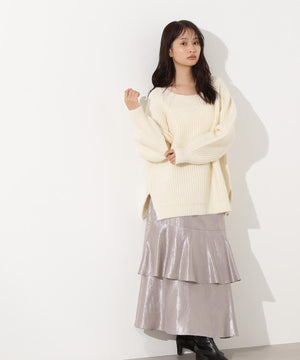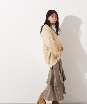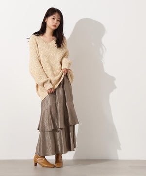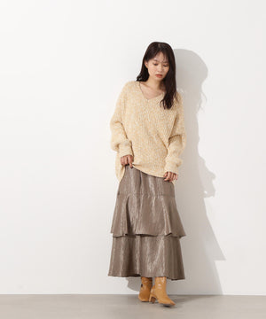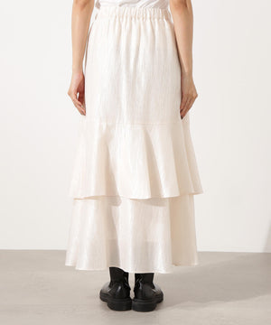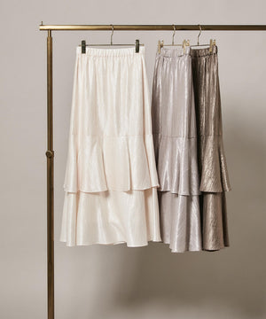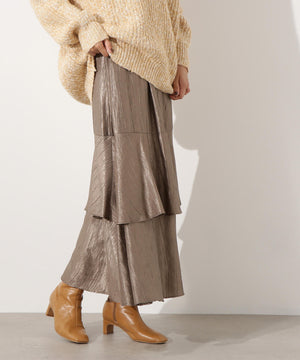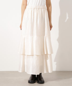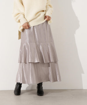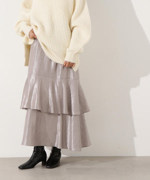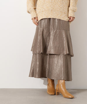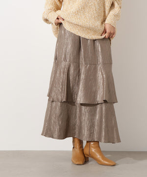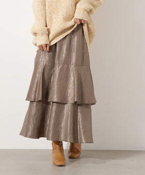 歩くと軽やかに揺れてコーディネートに華やかさをプラスするティアードスカート。起毛ニットや異素材アイテムと合わせると、奥行きのある冬らしいスタイルが完成します。パーティーやお食事会など、イベントの多い冬のシーズンに活躍間違いなしの一着です。