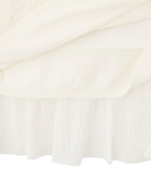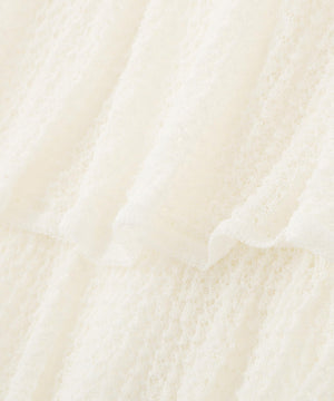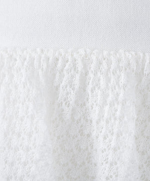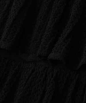 レース柄の編地で仕立てた、軽やかで表情ゆたかなニット素材を使用。