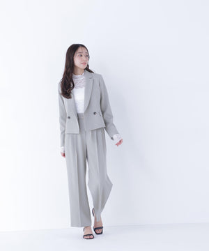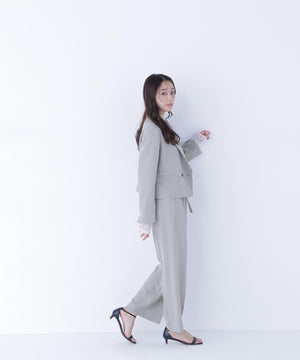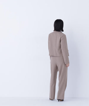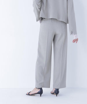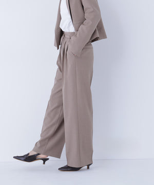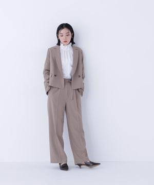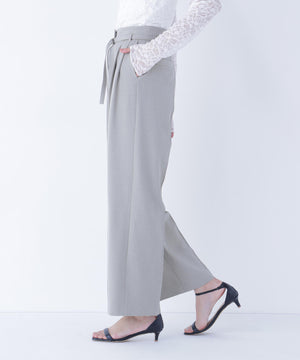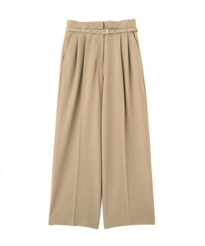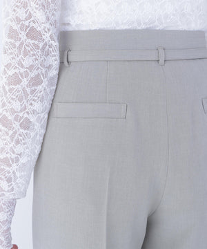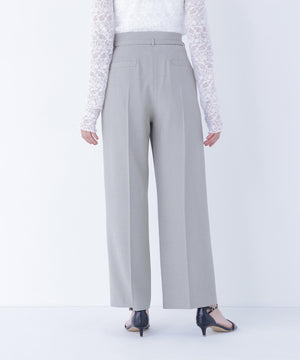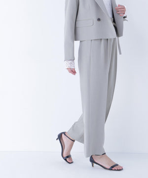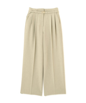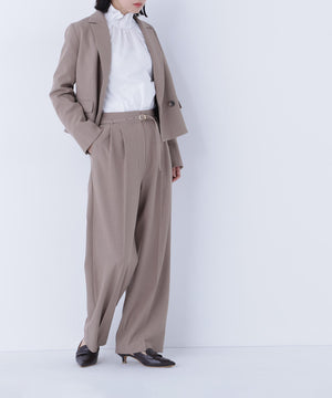 フロントに2タックを施し、立体感のあるシルエットで腰まわりをカバーしてくれるパンツ。ハイウエストデザインが脚長効果を狙いながらスタイルアップを叶えます。金属バックル付きの共生地ベルトがコーディネートの引き締めアクセントに。同シリーズのジャケットとのスーツスタイルもおすすめです。