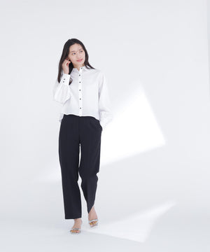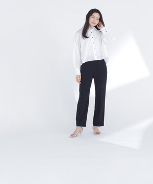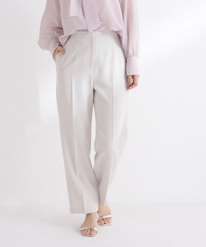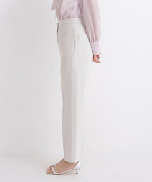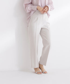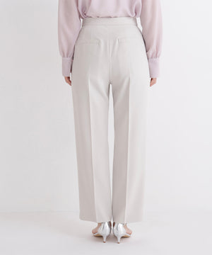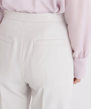 脚のラインを美しく見せながらスタイルアップ効果を期待できるストレートパンツ。センタープレスで縦ラインを強調し、きちんと感をプラス。ウエストはダーツ仕様ですっきりとさせて、腰まわりをキレイに見せてくれます。オンにもオフシーンに活躍でき、様々なトップスと着回せる万能な一本。