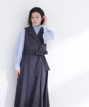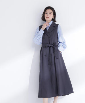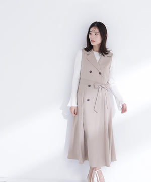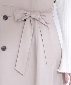 柔らかくしなやかな素材を使用した上品な雰囲気のトレンチジャンスカ。裾へ広がるフレアシルエットが女性らしい印象に見せてくれます。ウエストのリボンベルトでシルエット調整ができ、スタイルアップも叶う一枚。インナーを長袖から半袖に変えるとロングシーズン活躍します。便利なポケット付き。