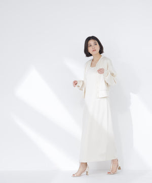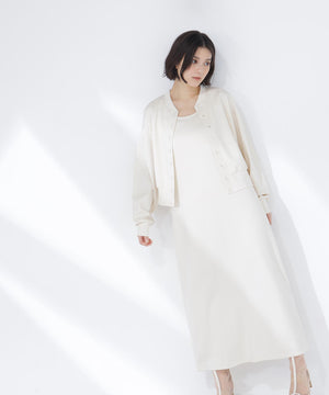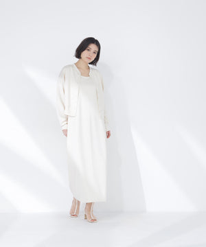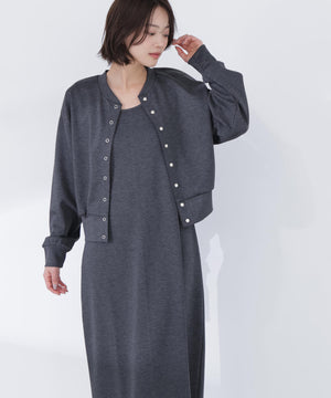 それぞれ単品でも着回せるカーディガンとワンピースのセットアイテムです。カーディガンは金属ハトメをあしらったドット釦がさりげないアクセント。同素材のノースリーブAラインワンピースは、体のラインを拾いにくく、縦ラインを意識したナローデザインです。デイリーからキレイめスタイルまで幅広く活躍してくれます。