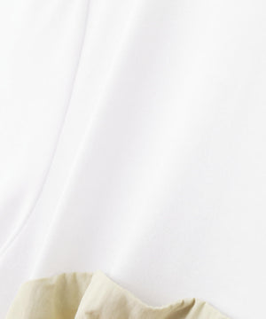 Tシャツとビスチェワンピースをドッキングした、一枚でコーディネートが完成するトレンド感のあるワンピース。ハリ感のあるワンピース素材が立体的で美しいシルエットをキープします。後ろシャーリングで着脱が楽にできる仕様。デイリーからお出かけまで幅広く活躍する着映えアイテムです。
