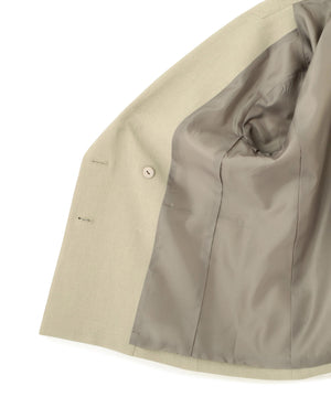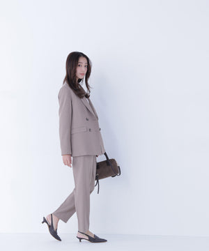 フロントはダブルの4つボタン仕様で、クラシカルかつ端正な印象のジャケット。ボクシーなシルエットが程よく抜け感を与えながらも、きちんと見えをキープします。同シリーズのパンツと合わせれば、洗練されたセットアップスタイルが完成。