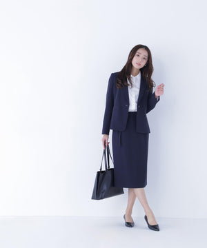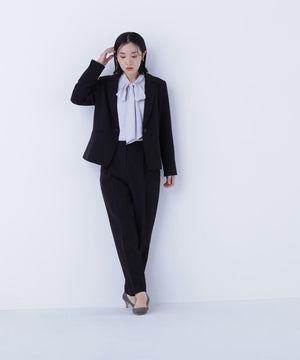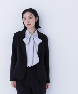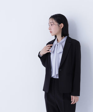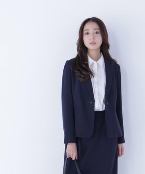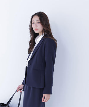 ストレッチの効いた素材で動きやすく、長時間の着用も快適なコンパクトシルエットのアイテム。フロントはすっきりとした印象のワンボタンデザインで、女性らしい抜け感を演出。袖口にはスリットが入り、ロールアップすると軽やかに着こなせます。同シリーズのパンツ・スカートとのスーツスタイルもおすすめ。