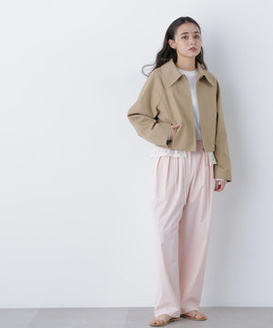 ステンカラーのフォルムシルエットブルゾン。コンパクトな着丈に、裾タックで立体的なシルエットを演出します。カジュアルスタイルにオススメのアウターです。