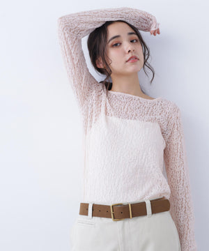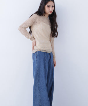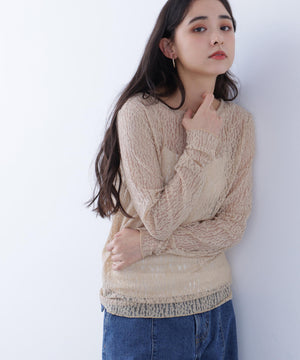 長めの着丈と袖丈で、旬のレイヤードスタイルをバランス良く見せてくれます。スウェットやボクシーニットのインに重ねると、レースがほどよくのぞき女性らしいアクセントに。繊細なレースの表情が、カジュアルアイテムと合わせるだけで、品のある抜け感をプラスしてくれます。