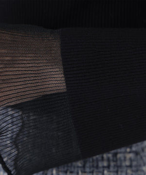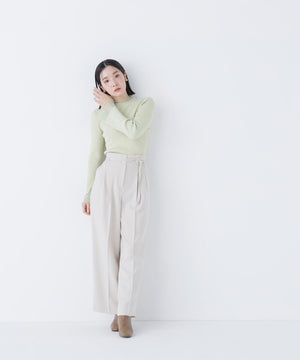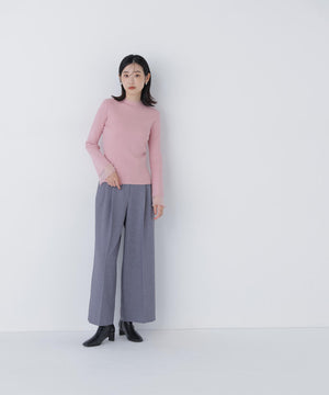 ほどよい暖かみのあるハイゲージのリブニット。袖口と襟はシアー編地を使用しています。