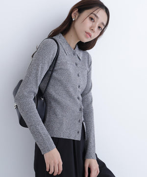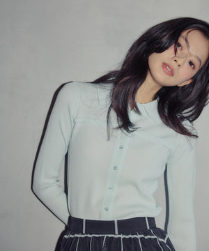 ヨーク切り替えでレイヤードをしたようなアクセントがあるポロニット。小さめのボタンをふんだんに付けており、シンプルながらも一枚で様になるデザインです。襟元のボタンを開閉すると抜け感の調節可能。ウィンドペンチェックスカート(店舗商品番号0176120120)合わせがおすすめです。