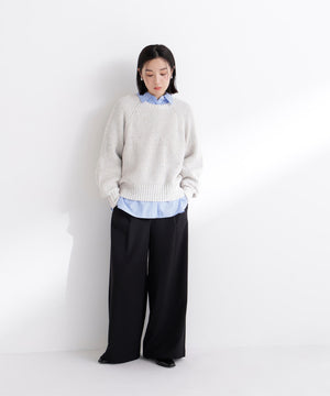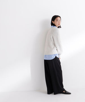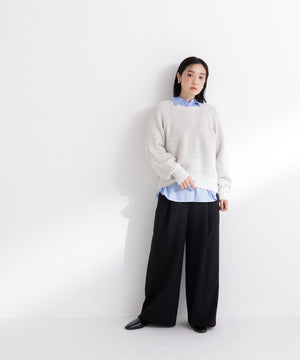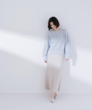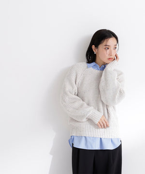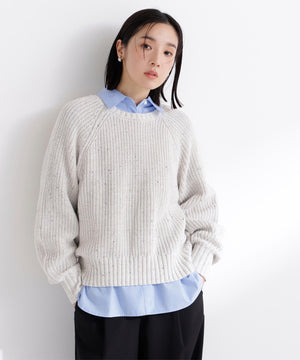 カラーネップを引き揃えた編地が愛らしいニットプルオーバー。クルーネックデザインに、ゆるっとしたシルエットがポイントです。片畦編みでざっくりと編み立てて、程よくカジュアルな雰囲気をプラス。華やかなカラーネップニットには、デニムやサテンイージーパンツと合わせたラフな着こなしがおすすめです。