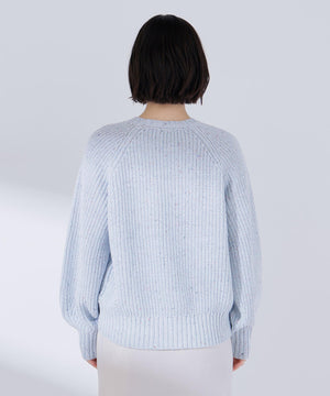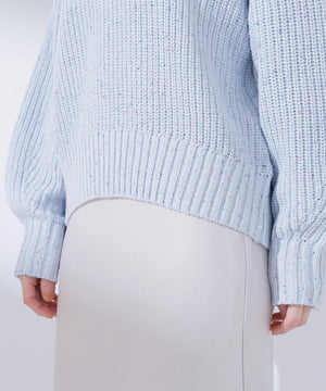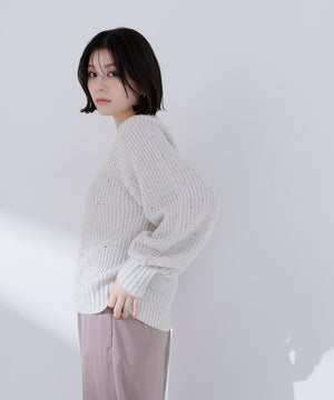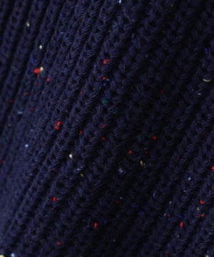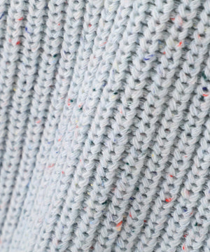 カラフルなカラーネップが入った糸を片畦編みでざっくりと編み立てています。柔らかいタッチの素材感です。