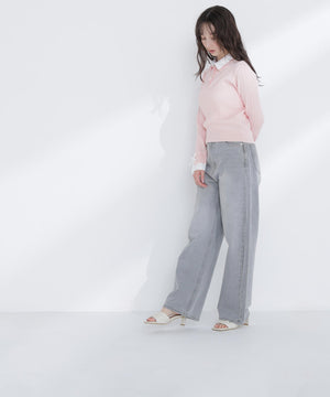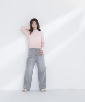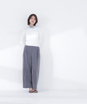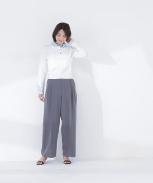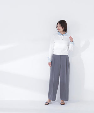 ニット部分はすっきりとしたハイゲージニット、シャツ部分は布帛シャツ素材を使用しています。
