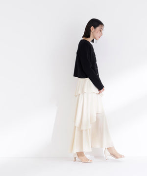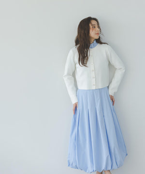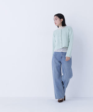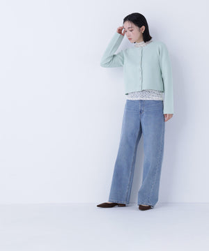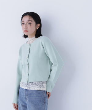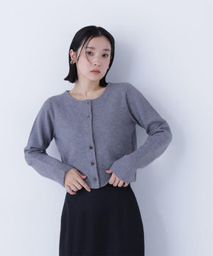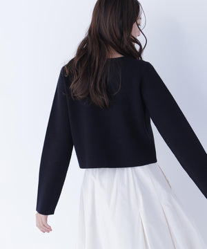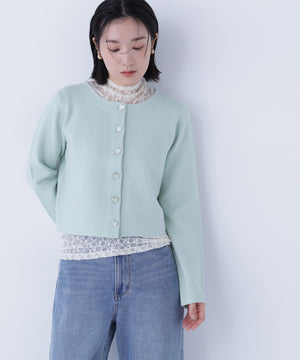 NBB人気のニットジャケットがアップデート!今回は襟元と前立ての切り替えをなくしたシンプルかつミニマルなデザインに、新しいハート釦を付けた、ボクシーシルエットのショート丈になっています。ライトゴールドカラーの縁とニットの色味に合わせて染めた、上品でかわいいハート釦がアクセント。着回し力のあるショート丈とボクシーシルエットのバランスが魅力です。