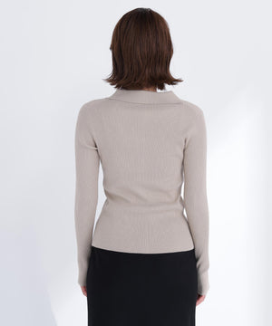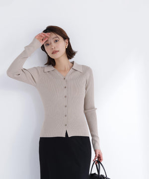 ポロ襟デザインがポイントの襟付きVネックニット。カジュアルさときちんと感を両立したデザインで、幅広いシーンに活躍します。身頃は程よいフィット感のリブニットですっきりとしたシルエットに。今季トレンドのポロ襟ニットを取り入れるだけで、旬なスタイリングが叶います。
