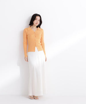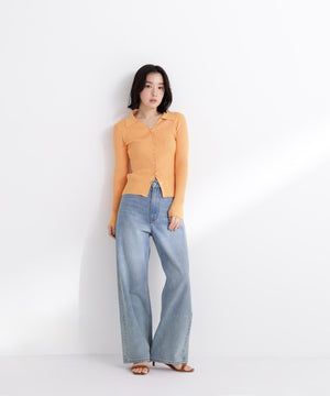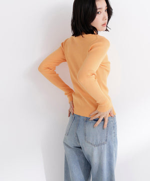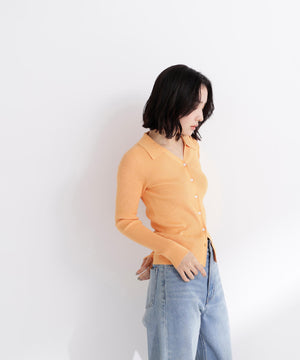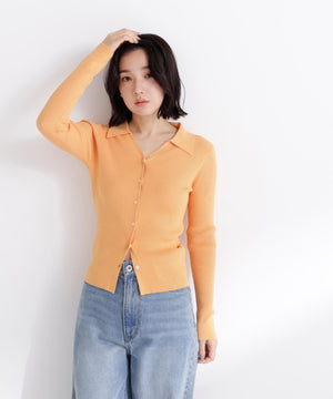 【WEB限定カラー:オレンジ】襟付Vネックリブニット