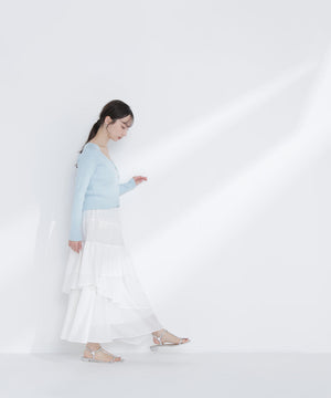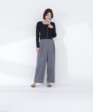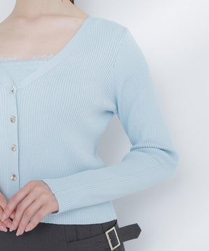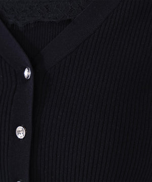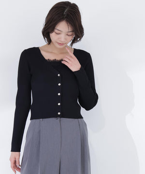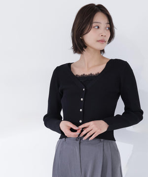 上品な質感のニットに、繊細なレースを組み合わせたアンサンブル。スカートで女性らしく、パンツで大人カジュアルに合わせたりと、デイリーはもちろん通勤シーンにも活躍。繊細なレース使いでコーディネートを華やかに見せてくれます。