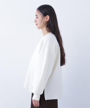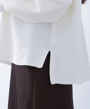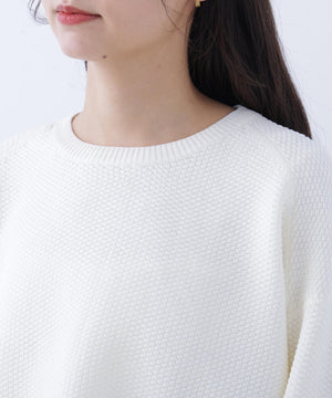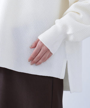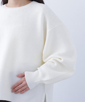 鹿の子編みで仕立てた、立体感のあるほどよいオーバーサイズニット。ゆったりシルエットで体型カバーも叶い、着回し力抜群です。カジュアルにもキレイめにも合わせやすく、デイリーコーデに活躍してくれます。