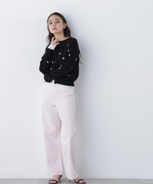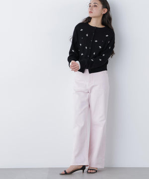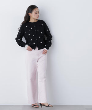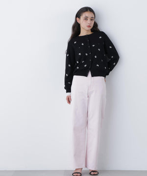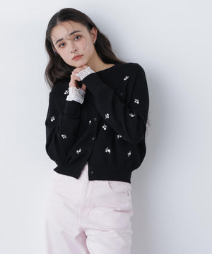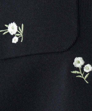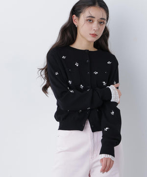 【一部店舗・mix.tokyo 限定カラー:ブラックベース2】フラワー刺繍ポケットカーディガン