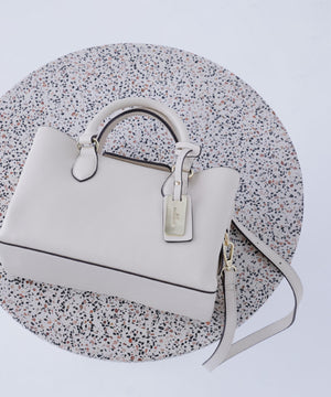 NBBで定番デザインのボストン型バッグです。ボディの前後に配されたふくらみのあるあおりポケットは、トップのマグネットで柔らかく開閉する仕様。中央部分はファスナーでしっかり閉じるので、中のモノが見えず安心です。タッチ感の良いセミマットなフェイクレザーの質感とNBBのメタルプレートがポイント。肩掛けできるショルダーストラップ付きです。