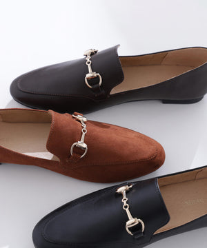 NBB人気のビットローファーです。すっと伸びたつま先がすっきりと見える、ビットモチーフがポイントのフラットソールのローファーです。スウェード調の起毛ライニングは足当たりが柔らかくとてもソフトな作りなので、長時間の歩行や、立ち仕事でもストレスフリーなはき心地の1足に仕上げました。