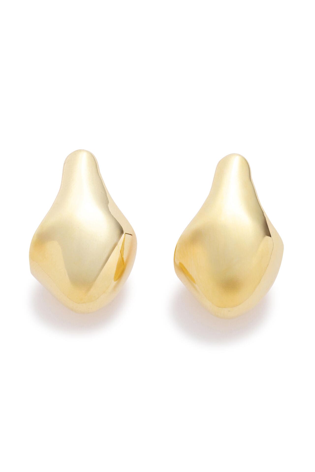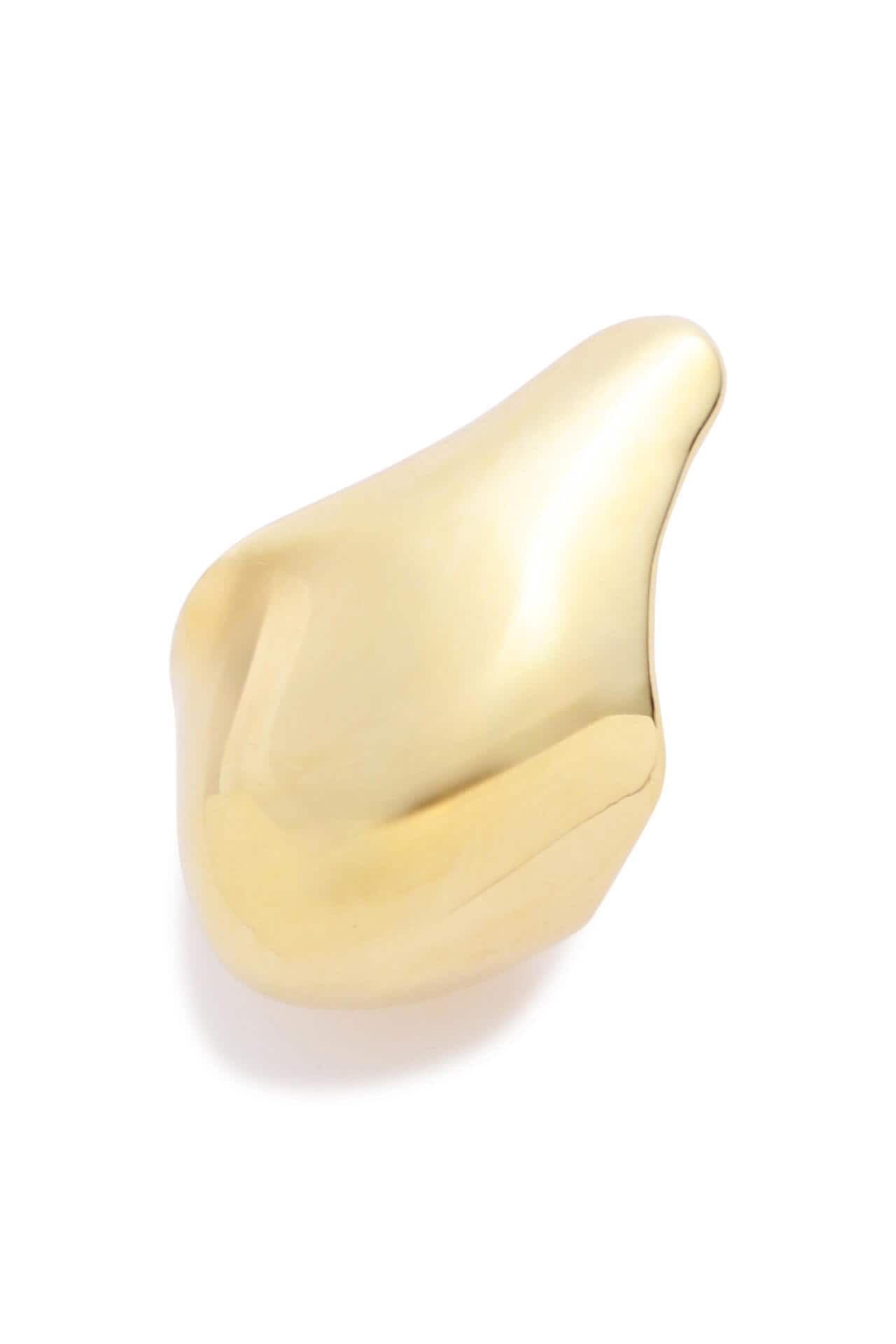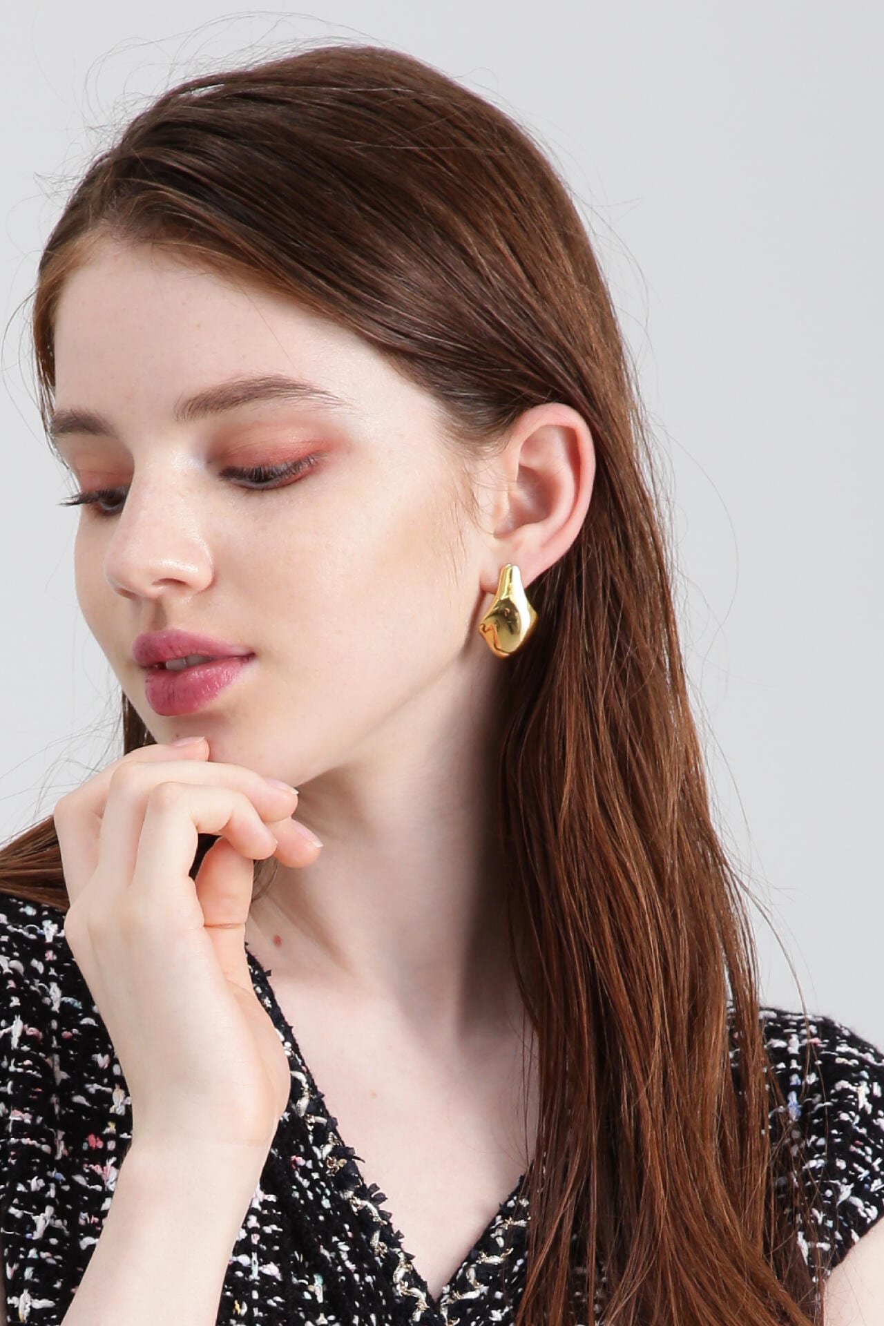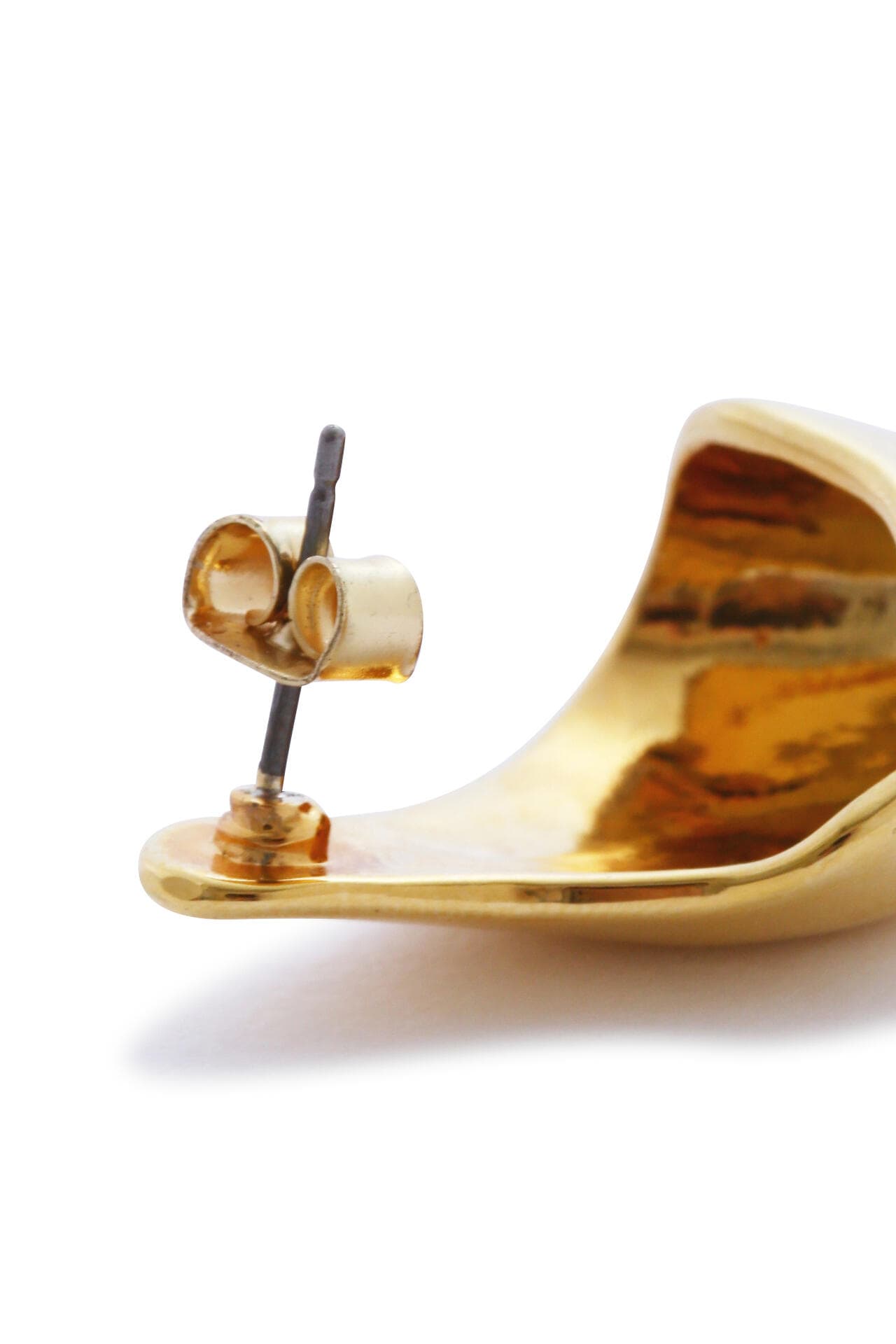 丸味のあるフォルムと下に向かって広がって厚みを出した存在感のあるピアスです。ツヤ感のあるゴールドが顔周りを華やかに引き立てます。
