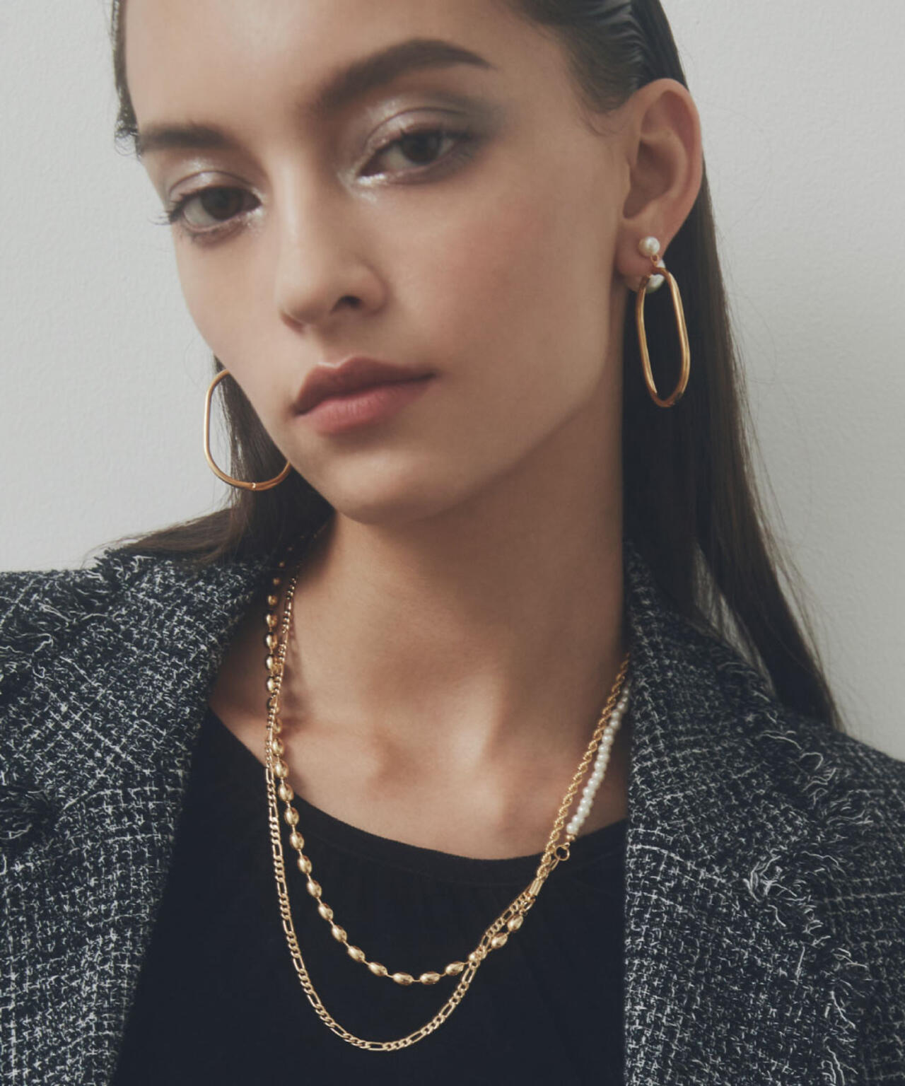 パールレイヤードチェーンネックレス