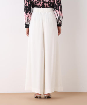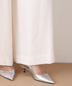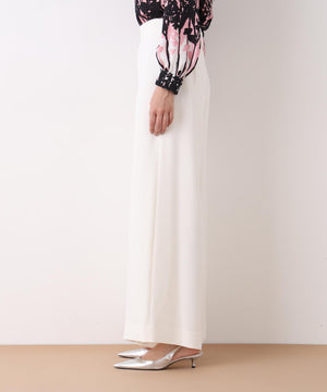 柔らかなはき心地とボディラインを拾わないハリを両立したカルゼで仕立てた秋のきれいめパンツ。腰まわりは柔らかにフィット、膝から下をわずかにフレアするシルエットに整えたストレートフレアパンツ。