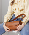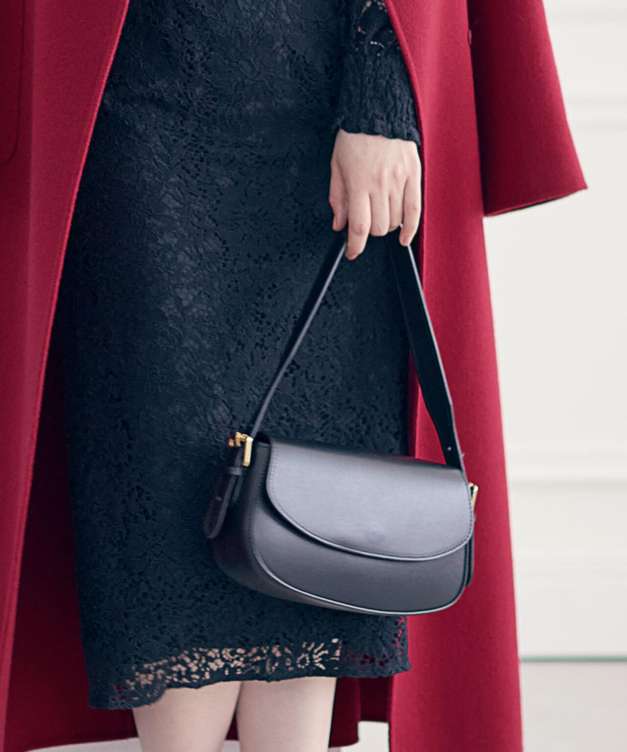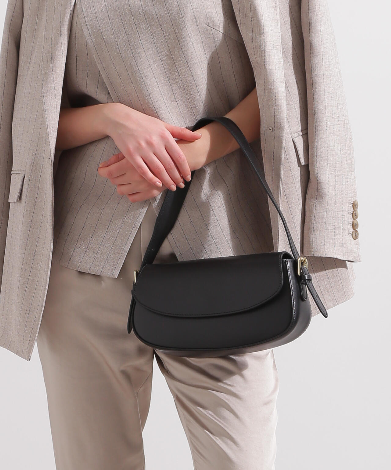 丸みを帯びた長方形のレザーハンドバッグ。ハンドルの長さは調節可能で、肩にかけることも可能です。うっすらとシボの入ったセミマットな表面感が上品な印象。マチ付きで、型崩れしにくいしっかりとした作りです。小ぶりながら、見た目以上に収納力があり、ちょっとしたお出かけに活躍してくれるアイテムです。
