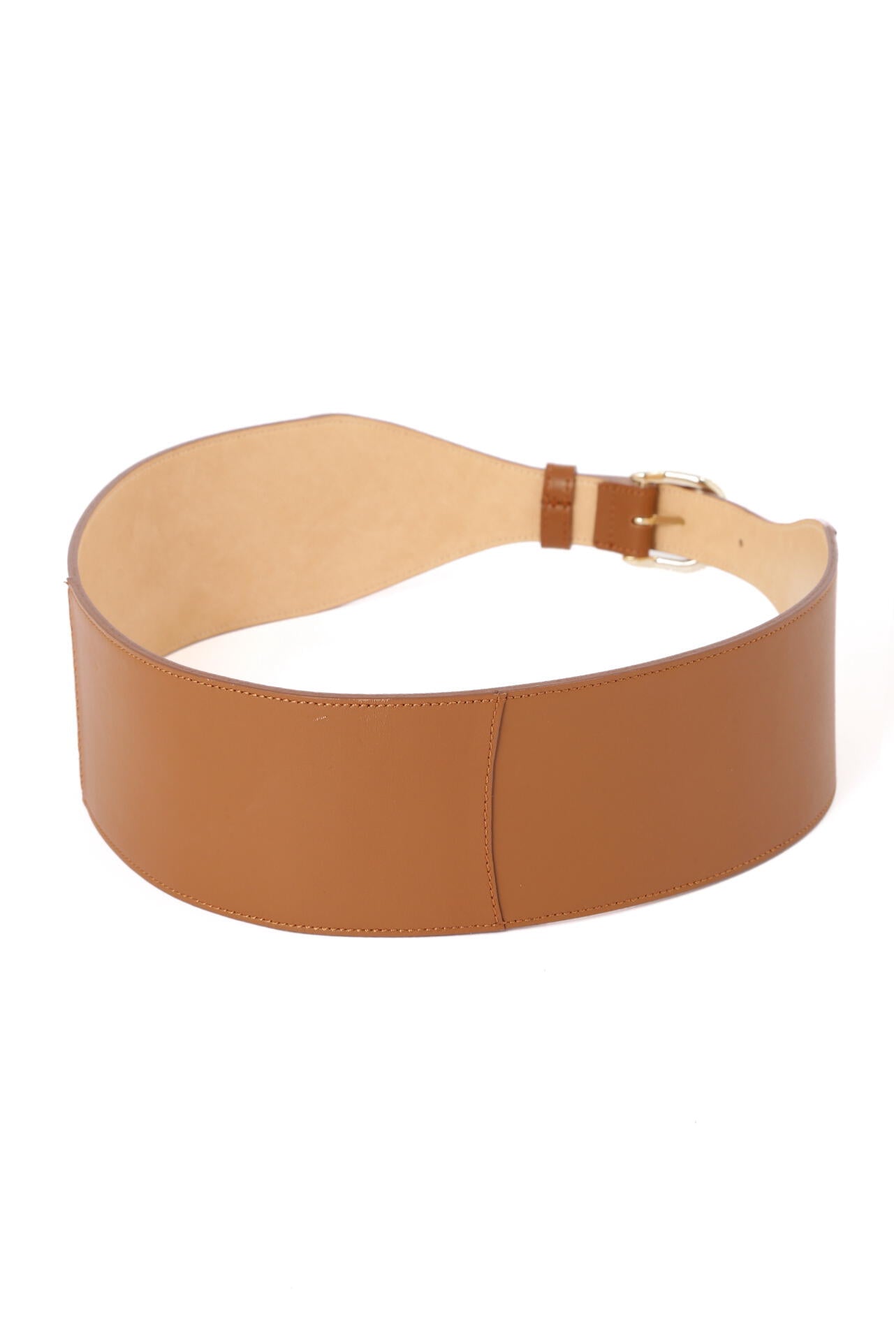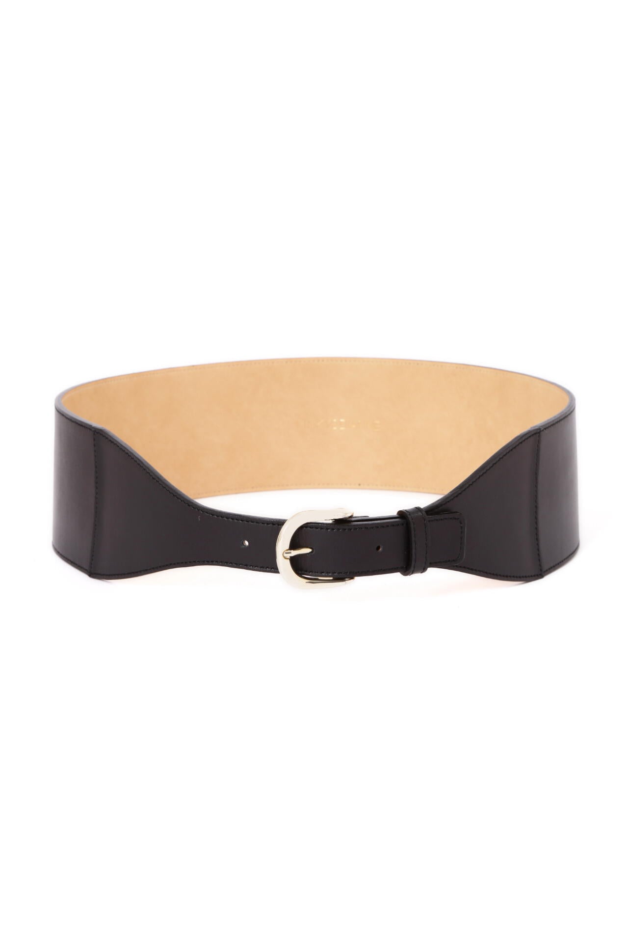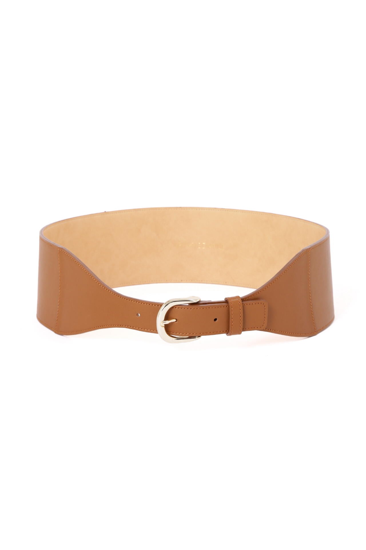 滑らかな表面感のスムースレザーを使用したワイドベルト。ウエストの中心に向かって細くなるデザインが、ウエストを華奢に見せてくれます。緩やかにカーブしたラインが女性らしい印象で、ワンピースやフレアスカートなどにぴったり。ハイウエストでマークすれば脚長効果も得られます。キレイにウエストフィットし、すっきりとしたシルエットがつくれます。