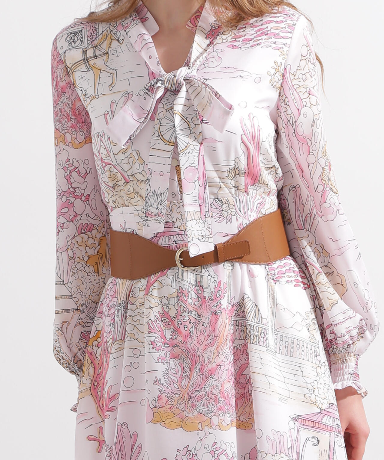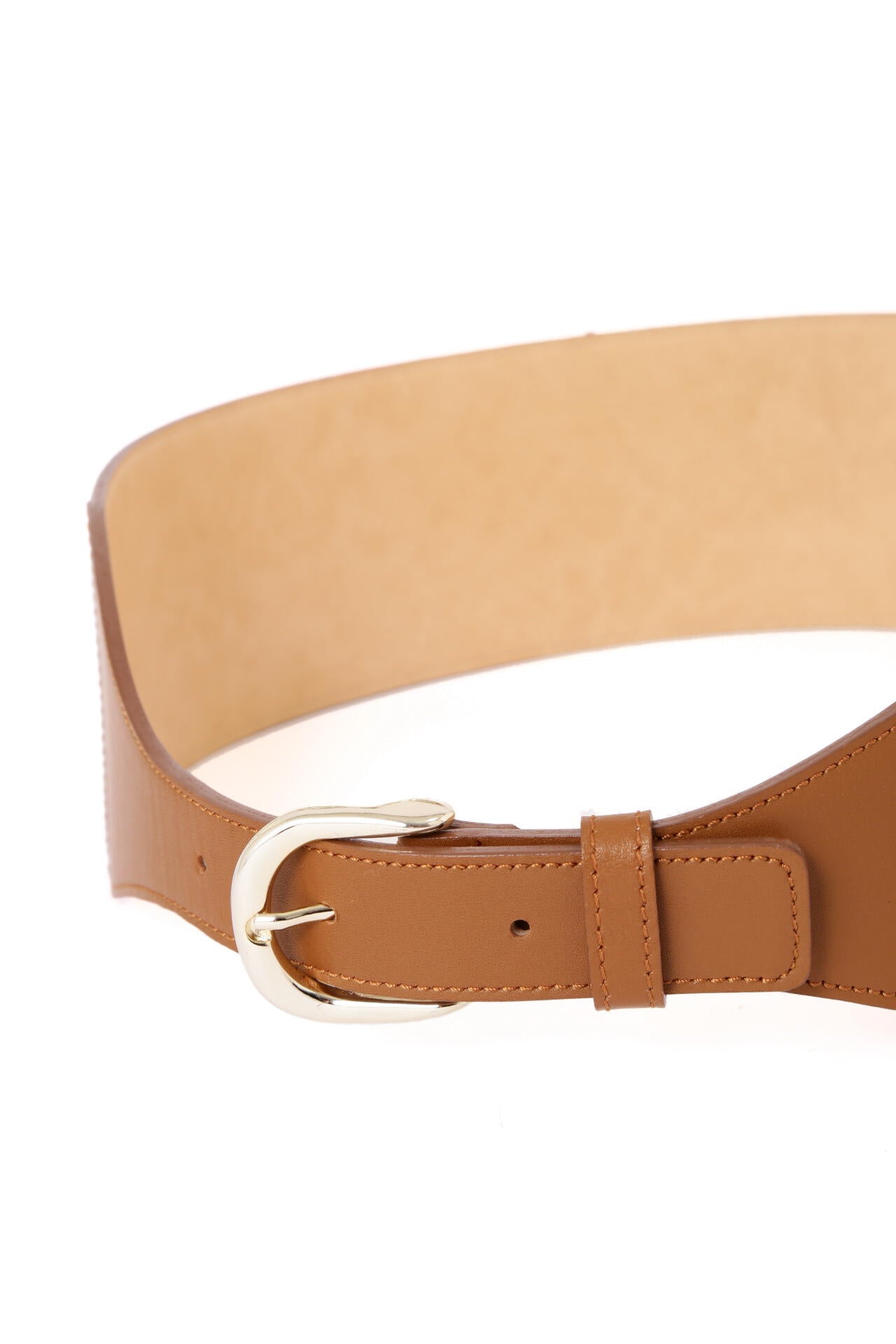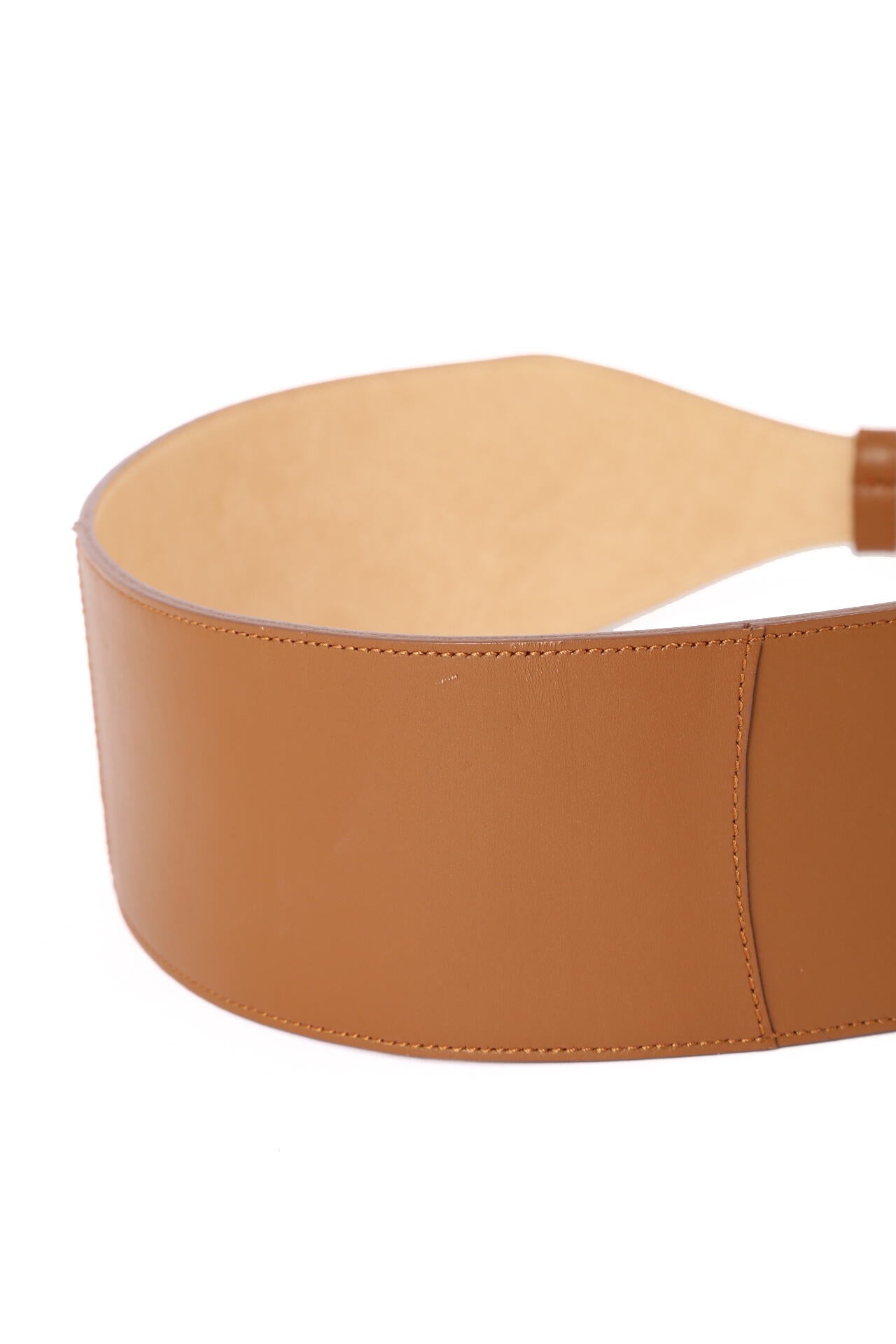 滑らかな表面感のスムースレザーを使用したワイドベルト。ウエストの中心に向かって細くなるデザインが、ウエストを華奢に見せてくれます。緩やかにカーブしたラインが女性らしい印象で、ワンピースやフレアスカートなどにぴったり。ハイウエストでマークすれば脚長効果も得られます。キレイにウエストフィットし、すっきりとしたシルエットがつくれます。