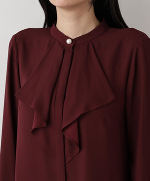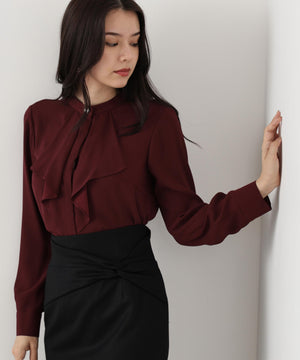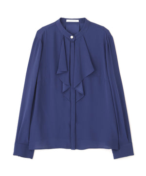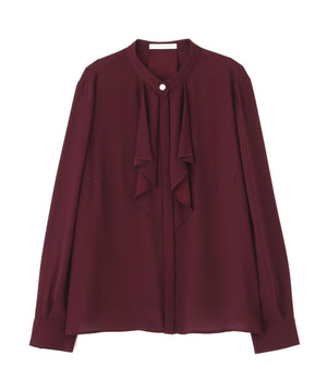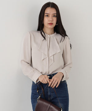 柔らかく繊細な印象の薄手サテンで仕立てたブラウスです。