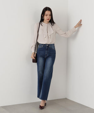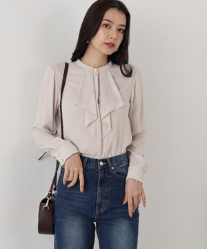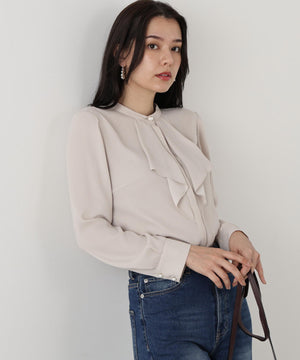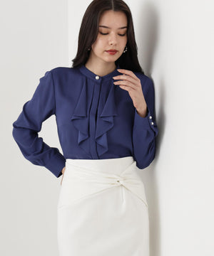 フロントにあしらったラッフルは、大きすぎず程よいバランスに抑えられており、着回しやすいデザインです。