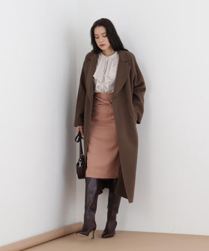 タテヨコにクレープ糸を使用しておりドレープ感があり、ナチュラルなストレッチ性を持った素材です。シルクのような上品な光沢感、美しい色合いが特長の生地です。