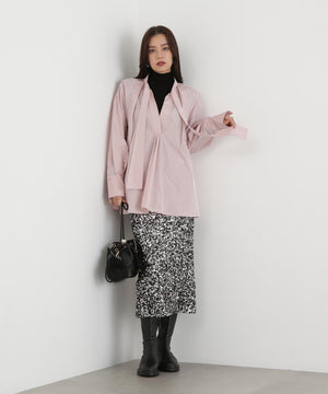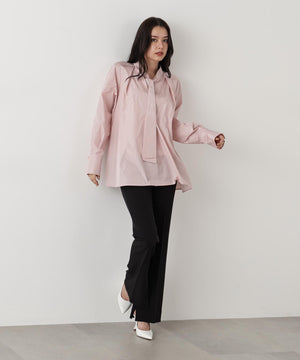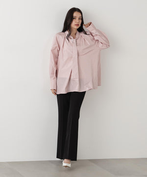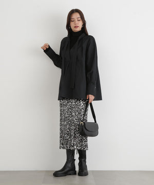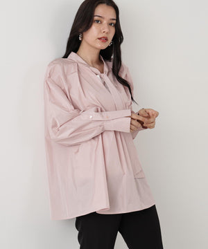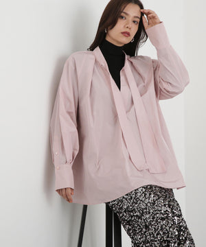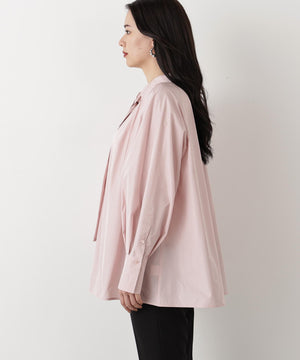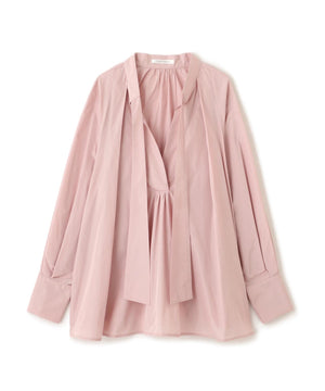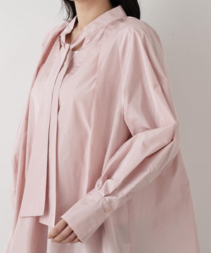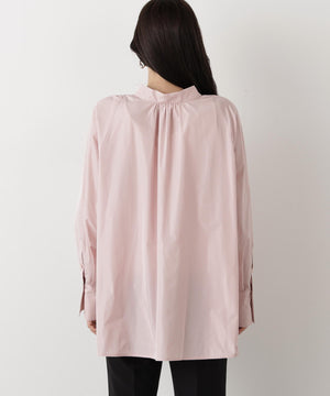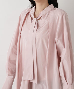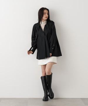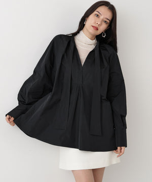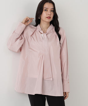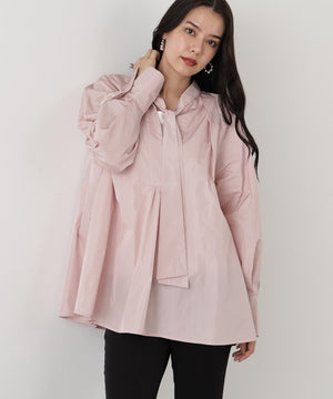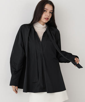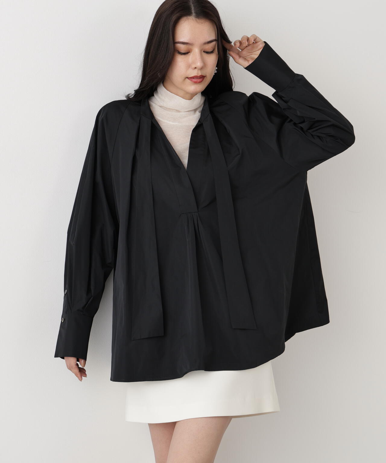 上品な光沢が印象的なタフタ素材のチュニックブラウス。