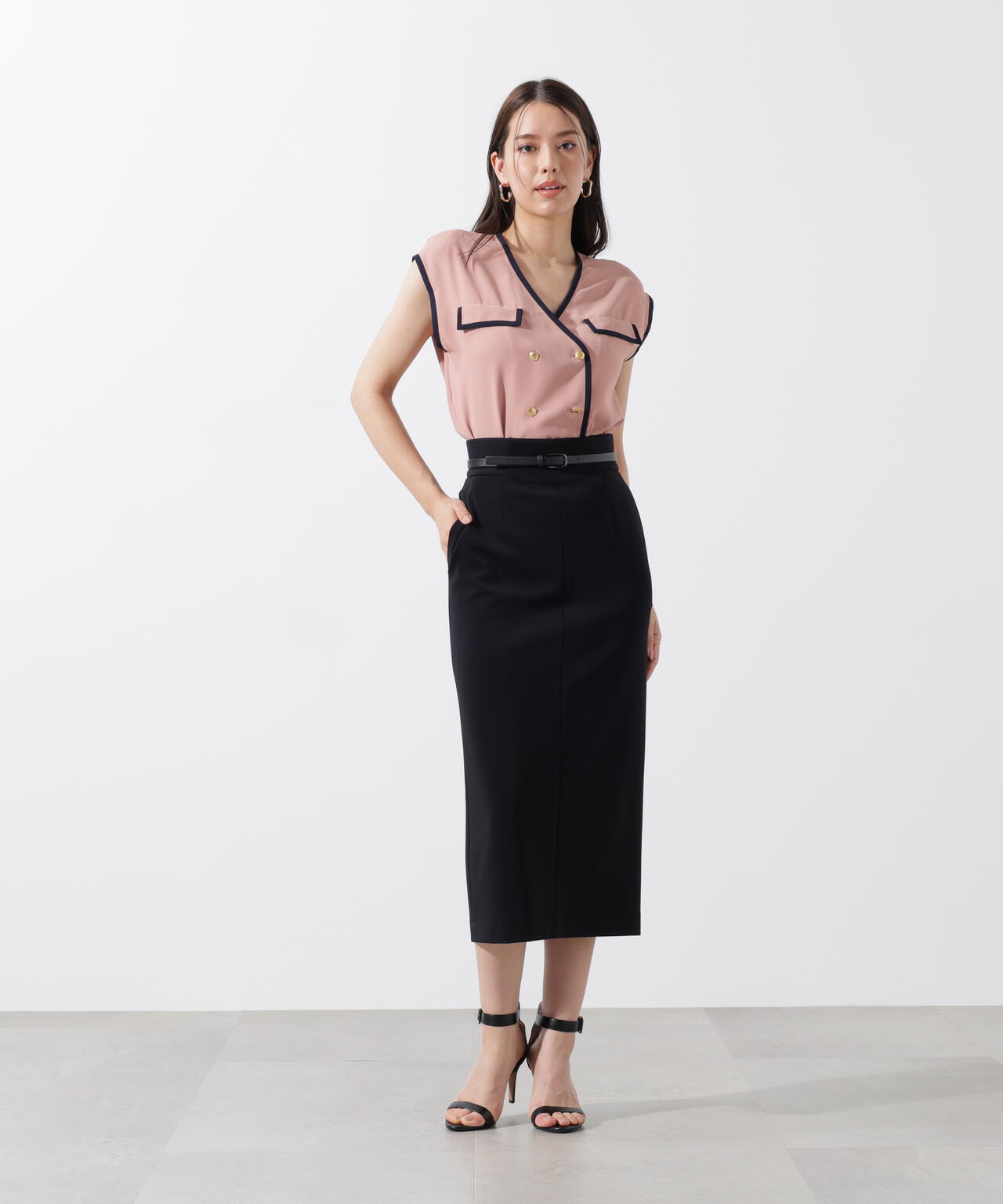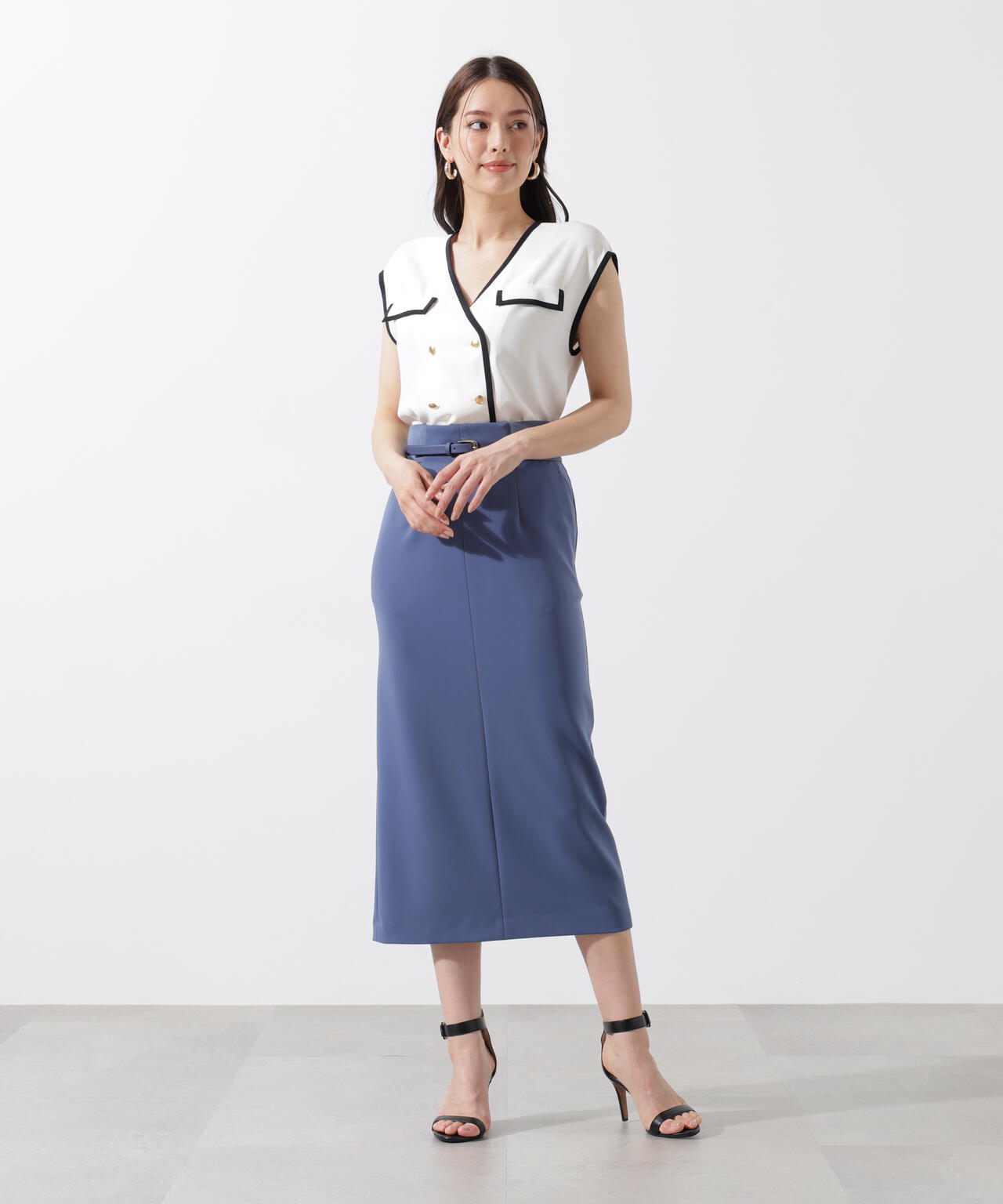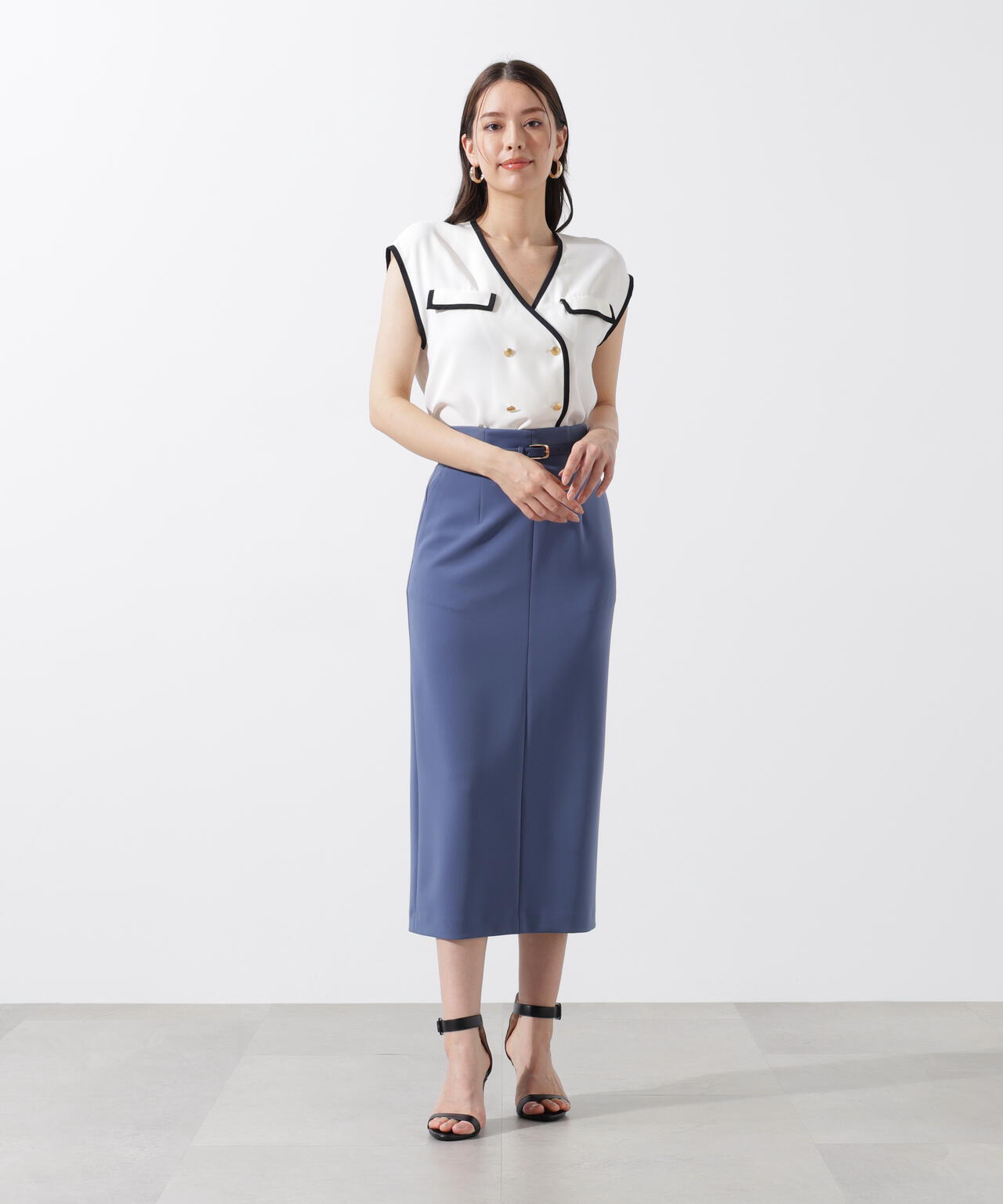 ややゆったりとしたシルエットが、こなれ感を演出します。スカートはもちろん、前後差のある着丈を活かしてパンツに後ろ裾をアウトした、リラックス感のあるスタイリングもおすすめです。